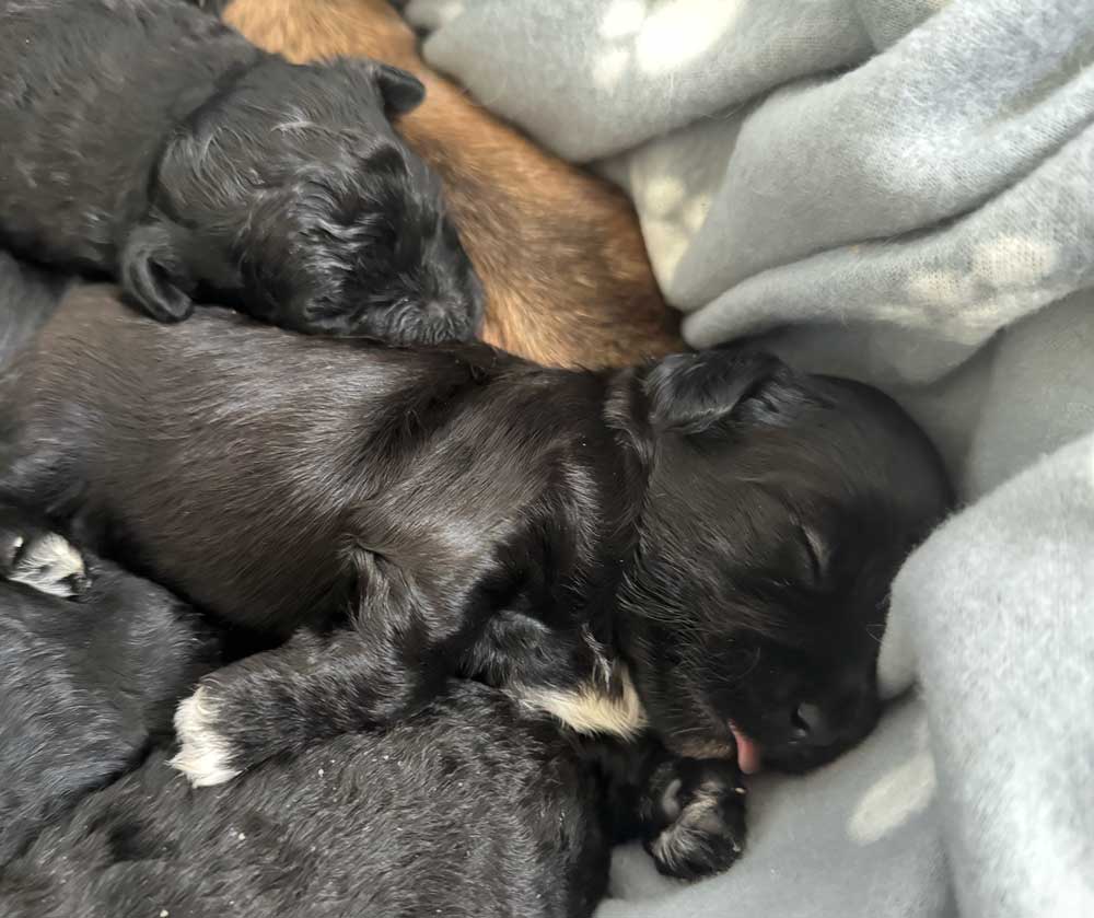 Gerade als die ersten Blumen anfingen zu blühen hat unsere liebevolle und reinrassige Bolonka-Zwetna-Mama sieben zuckersüße, kerngesunde Welpen zur Welt gebracht. Auch der stolze Papa, Coco Kokosnuss, ist ein reinrassiger Bolonka Zwetna – und das wunderschöne Ergebnis kann sich wirklich sehen lassen!